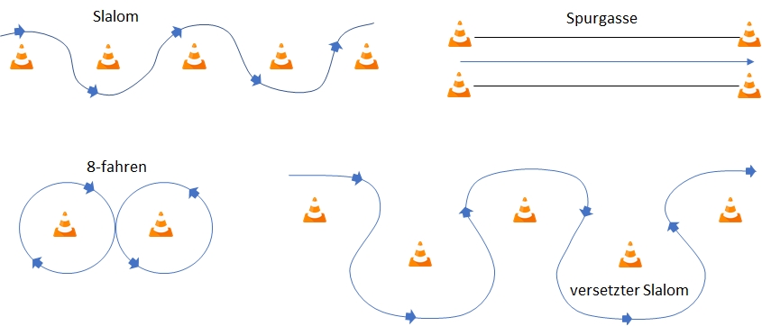 Du musst folgende Fahrübungen in normalen Verkehrsverhältnissen völlig sicher und mit der erforderlichen Vorsicht durchführen können: